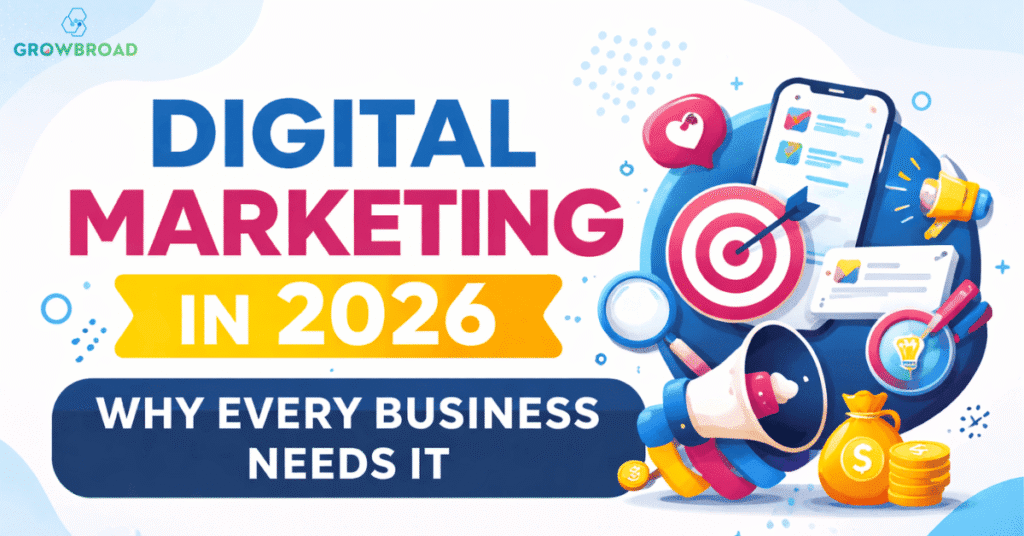 In this complete guide by GrowBroad (www.growbroad.com), we explain what digital marketing is, its key components, and why every business must invest in it in 2026.